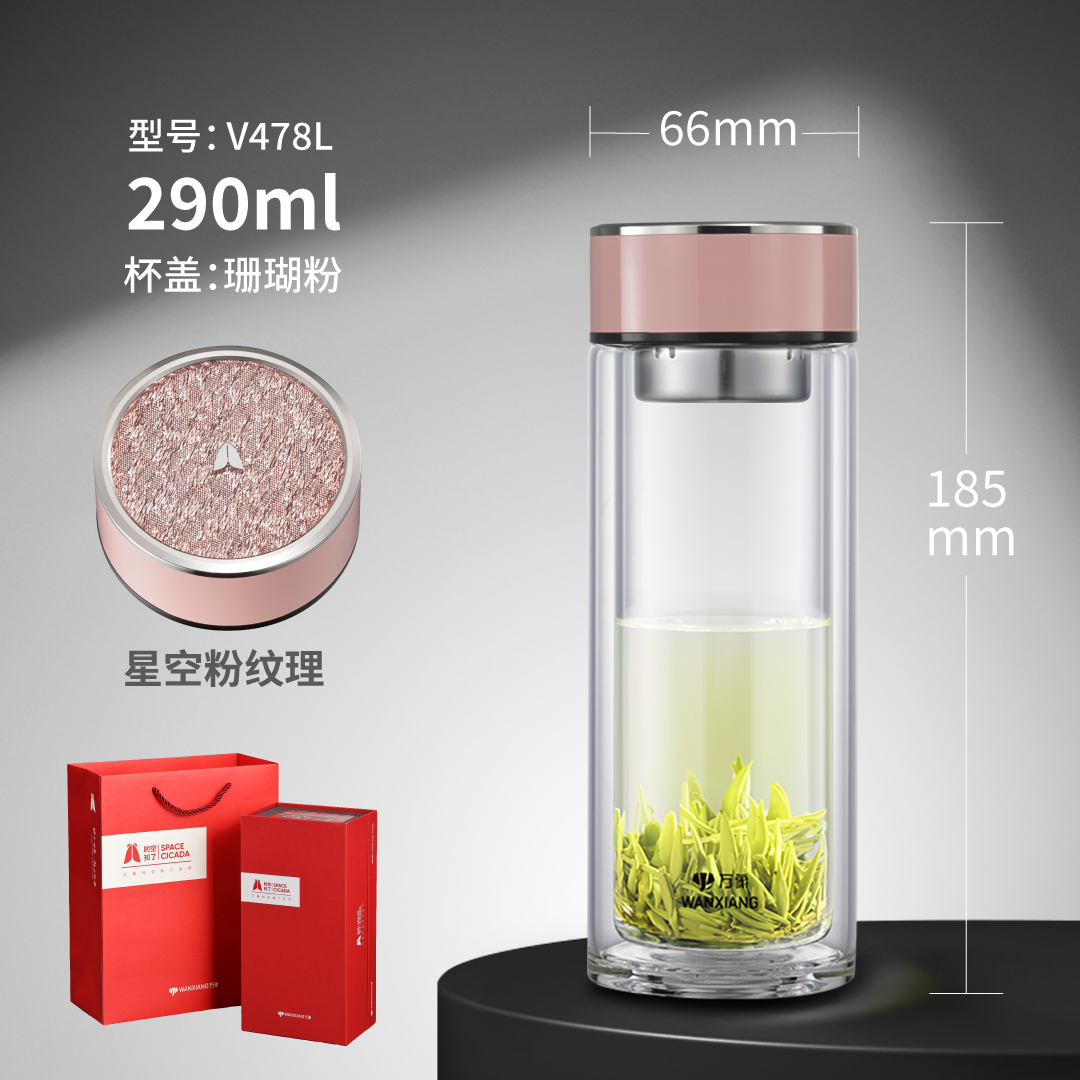 时空知了双层玻璃杯 V468L 脏粉色 青瓷色 浅米黄:¥119